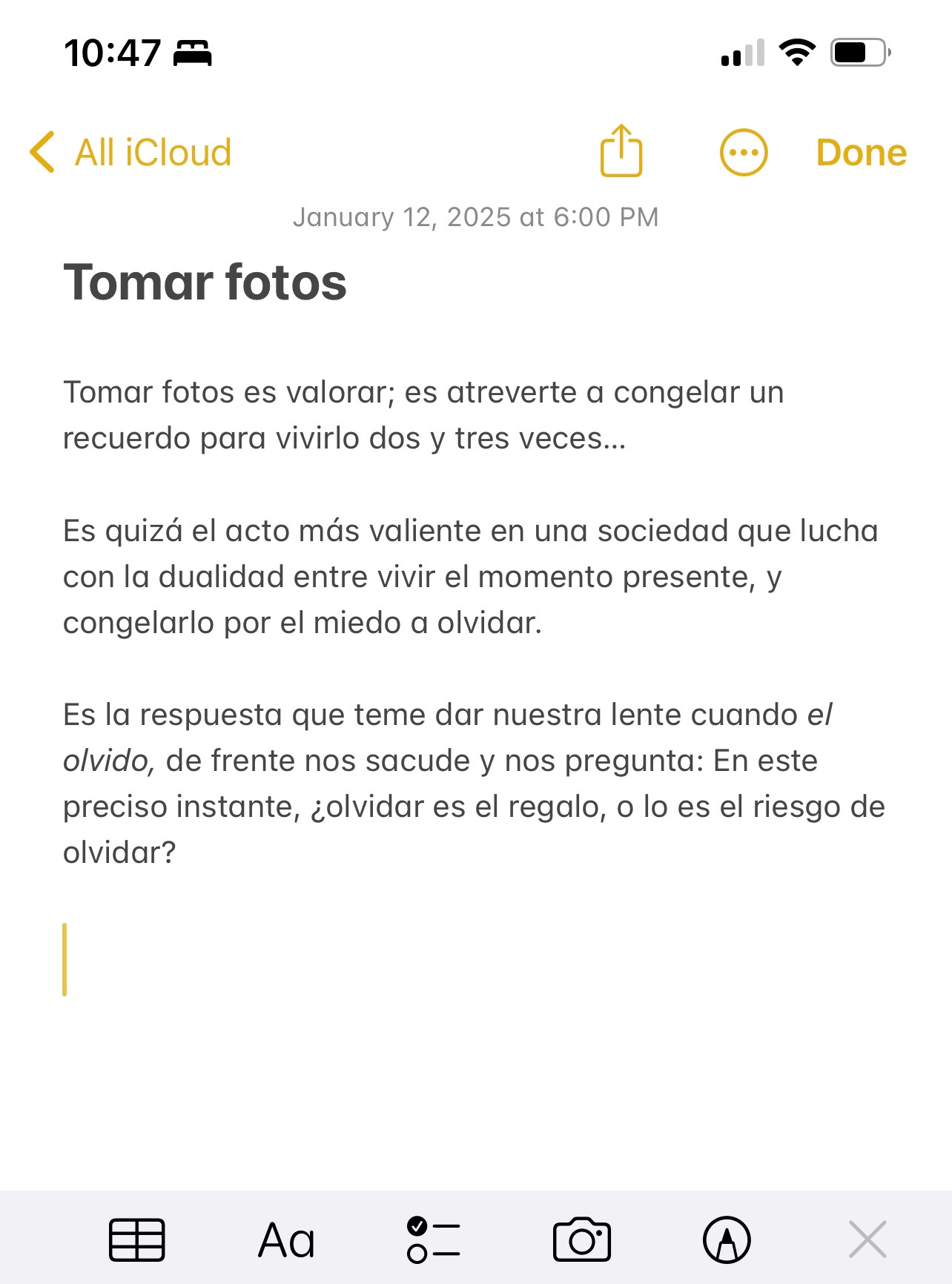 Juro que fue casualidad. El día que Benito lanzó su álbum DTMF yo había estado unas noches antes escribiendo sobre lo que significa para mí tomar fotos. [No que me guste mucho su música, pero quien soy yo para evitar enterarme del acontecimiento y negar lo peculiar de la sincronicidad]